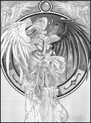 The most interesting angel in my opinion is Urd's angel: World of Elegance. For those of you who don't know, Urd is half demon, and half goddess. Her angel is a very odd looking creature which looks literally to be half demon, half angel. Unlike Belldandy, who has a close relationship with her angel, Urd cannot come to grips with the form of World of Elegance. Eventually when the only hope to save Keiichi and Skuld is to use her angel, she finally does call it. It seems after that, Urd accepts her angel. World of Elegance is an angel of fire.