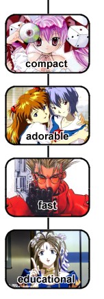 As e-commerce moves into the next millenium, are you prepared for what the future will bring? Do you expect prosparity? Do you dread failure? Archen brand anime pages will be there every step of the way. Served on rock solid UNIX servers, and based across 2 continents, Archen's anime pages are poised to meet all expectations and more. As the new economy has shown, dot coms are not necessarily long lived if there isn't enough substance to support them. Would you trust these new dot coms that are here now and might be gone tomorrow? Trust in established anime pages that have already weathered bad times without a scratch. Archen's Anime Page: a page that isn't a dot com, a page that experts trust, a recource for uncommon anime.
