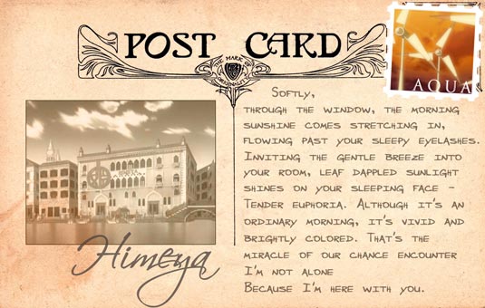 If quality is an important factor, consider Himeya Company. Himeya is one of the oldest water guide companies on Aqua: rated second in Neo Venzia. Being family run business, it is known for high standards, attention to service, and quality care of its customers. The company headquarters are thought to be a reproduction of Hotel Danieli in old Venice.