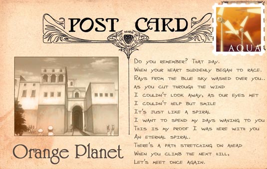 While one of the newer water touring companies, Orange Planet derives its name from Aqua's heritage (although it is anything but orange now). Orange Planet has grown to become the biggest water touring company in Neo Venzia, however this doesn't mean service was sacrificed in the process. Some of the top Undines in Neo Venzia are employed here; one of which is considered one of the current three Great Water Faeries.