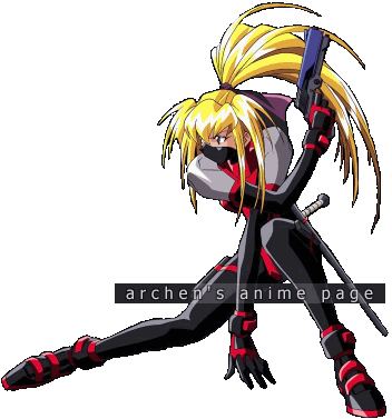 Rio is ditsy, spends way too much of her paycheck, and has man problems. Due to her spending habits, she usually eats cheap ramen to get through the month, and is often pursued by bill collectors. This is also why she's such an enthusiastic member of Warrior - extra duty pay! Rio is skilled at close combat and very effective when directed by Maki, but otherwise lacks patience and strategy.