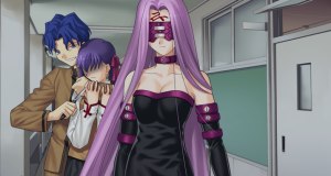 Shiro talks more with Kirei and learns that Kiritsugu was in the service of the Enzbern family during the last war, betraying them at the end and destroying the grail. Even so, Shiro has a hard time accepting a little girl like Illya as his enemy. While Rin and Shiro decide to join forces, they mainly do so by patrolling for other masters separatly. The first one Shiro encounters is Shinji Matou and his servant Rider. The two are easily defeated, but the contest is interrupted by an old man named Zouken Matou. He's supsicous and has a disgusting air of decay about him, but it doesn't seem like he means anyone any harm - for the moment. During a brief discussion he reveals that Shinji is the master representing the Matou family even though their ability to use magic had died out. They only hand down magical knowlege to one successor, meaning Sakura isn't involved. Soon after everyone parts ways, but it gives Shiro a lot to think about.