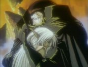 But far below is where the true fight is. Parn gives himself away, and is thus attacked by Wagnard. As Wagnard is distracted with beating the crap out of Parn, Ashrum strikes him down. Parn struggles to his feet and makes his way towards Deedlit, who's life hangs by a thread... only to be blocked by Ashrum. Parn doesn't want to fight, and appeals to the dark knight that Marmo will be destroyed if Kardis is resurrected. Ashrum is obviously beyond caring about anything