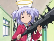 Bludgeoning Angel Dokuro-chanSummary: >Sakura seems like any other 14 year old boy. He attends school, has a crush on a classmate and tries his best in school. That last part might get him in trouble. Apparently in the future he becomes something like an evil genius and will invent a device which grants women immortality but stops them from aging past 12. This pedophile's world is an affront to God, so an angel named Dokuro is sent back in time to do away with Sakura. Dokuro however takes a liking to Sakura, and decides to instead keep him occupied so he doesn't get a chance to create this sinister invention. While officially deciding not to kill him, he still ends up dead by her hand quite often due to misunderstandings, over reactions, and simple carelessness. Luckily she can always resurrect him to cover her mistakes. Some other angels sent from the future may finally get the job done right however. Thoughts: >There are a lot of shows that I've picked up to because of the title, or because of the outrageous concept. It's rare for something this bizarre to live up to expectations, but Bludgeoning Angel Dokuro-chan gets it done. If you've ever seen some of the over the top cultural wackiness that comes out of Japan in the form of commercials, game shows etc; this is a lot like that. If you're thinking "I want to see some really crazy messed up stuff from Japan", this title was made for you. Bludgeoning Angel Dokuro-chan knows at all times what it's supposed to be doing, and why you're watching it. Many titles screw up their concept, try to be something else, or don't adhere to their own script. This anime is at least consistent in maintaining it's brainless fun. The opening theme for example, could have been a generic pop song, but instead it's a cute, violent and silly song, with lyrics that explain the show and is perfectly in tune with the concept. Actually, if you watch the opening (look it up online) and get the humor, this will pretty much determine what you'll get out of the show. Like it or hate it. The setup doesn't have a whole lot to do with the show. It mainly drifts into whatever story (not like it matters) and Dokuro (among others) abusing and killing Sakura. This oddball slapstick is the mainstay of this title. Dokuro almost always maintains pristine cuteness, but kills Sakura in extremely violent and bloody ways. It's also a bit risque, with some off the wall comedy mixed in. The jokes don't vary much, so if you're not big on the humor in the first place it will get old fast. Personally, no matter how many times Dokuro killed Sakura, I never got tired of her stock resurrection healing animation (strait up magical girl style). One warning. Bludgeoning Angel Dokuro-chan relies heavily on shock value for its entertainment appeal. This wears off the more you watch, so it's probably better to watch one or two episodes at a time, instead of all of them in one go. Bludgeoning Angel Dokuro-chan definitely has a target audience, and I'm going to say you'd want to watch this only if you WANT to watch something really freaking weird. If you are prudish about absolutely anything you'll want to avoid this one - It'll surely offend you, because it tries its damnedest to do so. As for me, I liked it but I have to admit it was pretty weak aside from it's inherent weirdness. It's dumb, and totally wrong yet fun and completely honest about what it is. It's ok if you can tolerate (or are looking) for something on a level of extreme edginess. Quote: >Sakura: Dokuro-chan, I have said this numerous times, but if you insert an outside item into my body, I die. Please remember that. Dokuro: ... ... ... okay! Sakura: What's with that pause? Screen Caps: >