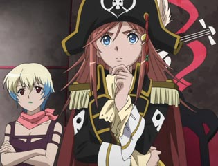 Bodacious Space PiratesSummary: >Marika is an average girl on a frontier planet attending school. Her carefree life changes dramatically when she learns her father was the captain of a pirate ship. As his only child, Marika will inherit the position. Marika is only vaguely familiar with pirates, but this is a good opportunity to venture into space. Trying to balance a life between pirate captain and school girl will be tough. Who ever heard of legal pirates anyway? Thoughts: >I guess between the camps of Cyber Ninja vs Space Pirates, I'd go with the pirates; particularly the Bodacious ones. They say "don't judge a book by it's cover" but there's many things not to judge this one by. An anime with "bodacious" in the title, with hot pink logo complete with heart accent. Or the schoolgirl pirate concept. However Bodacious Space Pirates is better than expected, and nothing like the vapid fan service overload I'd guess it was. It doesn't approach any kind of awesomeness, but is quite strong all the same. Despite the outward indicators of stupidity, the show is smartly constructed. For instance "electronic warfare" is a major factor in space battles, where computers fend of hacking attacks and compensate for bad data sent to their sensors. The idea that pirates are more like freelancers, is plausible. There is also the quirky job of "pirate shows", where rich cruse ships hire pirates to "rob them" for a thrilling show. It's not an especially brainy concept, and very "anime" with the setup, but the sci-fi mostly works. As the protagonist, Marika is a likable heroin with a well rounded personality. She's easy going and a bit spaced out, but not annoying. Although tossed into her new role out of the blue, she's determined to follow her path and see things through. As for everyone else, Marika's mom and her rival Chiaki fair well, but everyone else is just there. Bodacious Space Pirates does have a problem with pacing, and some parts seriously drag. Even with the leisurly pace, it never felt like things were going too slow, however by the end I felt more should have happend in 26 episodes. Worth checking out? Sure. Don't let the weird title dissuade you. It's on the tame side of anime, but overall solid enough to give a shot. Quote: >Princess: When you do something for the man you love instead of the world, it's easier to decide what must be done. In the end it's better to do things for someone than something. Screen Caps: >