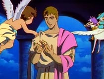 Hermes: Winds of LoveSummary: >In ancient Greece, a hero named Hermes will arise. Over the years he will find love with Aphrodite, friendship with Thesus, and conflict with the menacing king Minos. Hermes tale isn't simply that of a warrior though. He'll also have to develop as a scholar in spiritual strength. Only then will Hermes be able to truly defeat Minus, who now rules the underworld. Thoughts: >Hermes: Winds of Love isn't exactly a tale from Greek mythology, nor a mythological perspective either. It's a psychedelic interpretation mixing both. I expected an action / love epic, but didn't expect a tale strangely prophetic and philosophical. In fact this anime does a lot of weird stuff that bucks pretty much every trend you might expect in an anime. It has a style akin to that of a western animated film. It deals with western civilization topics. There's are two musical style songs in the beginning, including Aphrodite singing accompanied by imagery of her riding dolphins. (I was a bit worried this was a musical in the beginning). You're on this site to read reviews on anime, so this is probably not the kind of title you're looking for. On a film budget, this one has consistent attractive designs, and attention to detail. The animation isn't noteworthy aside from the occasional stand out visuals. It's attractive, but lacking the artistic panache to make it worth viewing for that alone (and there are anime titles that can get away with that). Characters are essentially cliche heroes and damsels. They're perfectly suited to this title, but are incapable of carrying the title past the weak story. The story isn't terrible, but wanders aimlessly from start to "finish", making the whole film feel lost. After half an hour of Hermes getting a guided tour of the afterlife, he gets to see the underworld. I figured this was the point things had built towards, until everything is quickly resolved by ridiculous divine plot convenience nonsense. I may not criticise the differences between story and mythology, but I am the kind who nitpicks on details. When rescuing Aphrodite, Hermes is pursued by Greek warships, which could surround it, ram it and punch a hole in the side, board his vessel. Instead they stop... and use archers. Why does king Minos swear to destroy puny Crete, but fail to do so in the 25 years Hermes grows up? How can Hermes serenade Aphrodite through a 5 minute song, but it isn't until he's finished that a guard bursts out a door and yell "Is someone out there?" It's amazing I wasn't bored to death watching this. I probably should have been. The "end" didn't sit well with me. When asking myself "what in the hell was the show about", I realized I had no idea. Hermes: Winds of Love has a few things going for it. It's spiritual and weird. Watching this anime is probably awesome if you're high. For those of us without chemical assistance, it's too much of a mess to recommend. Screen Caps: >