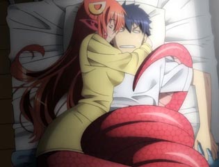 Monster MusumeSummary: >Creatures such as harpies, centars and mermaids are generally associated as legend, but in fact they're real. After admitting their existence (long hidden) the government implements the "Cultural Exchange Act", where these monster species can live with a human host family. Kihimo had only heard of the recent influx of monster species, until he mistakenly ends up hosting one. Miia takes a liking to Kihimo immediately, even if there are difficulties with inter-species barriers. While Miia struggles with competition as more and more female monsters taking up residence in the home, Kihimo struggles surviving their affections. Thoughts: >If you think taking the usual harem antics, and injecting monster girls into it can salvage a show, you need to get out more. And yes, I need to get out more. If you hate harem anime, over sexed situations, generic waste of space male leads, or mountains of cleavage: steer clear of this show. On the other hand if you're too curious for your own good, I'd give it a shot. You'll know by the end of the opening theme of the first episode if you can stick this one out. Monster Musume: Everyday Life With Monster Girls, begins with Miia the snake girl doing the typical harem thing, as she shamelessly throws herself at Kimihito. What makes this one different isn't the personalities of the girls (they're as stock as they come), it's the monster side which adds a new dimension of weirdness keeping it interesting. For instance Miia is cold blooded, and naturally gravitates towards warm things in the morning. Of course this brings up the question of how a guy could possibly have sex with a snake (girl), but as Miia continues to pursue Kimihito with not so subtle hints I kinda started thinking that was possible. Which isn't something I wanted to think much about. Thanks anime. Lets not even get into other physiological issues like putting boobs on a snake. Or how shedding her skin is among the most perverse things I've watched in anime. Sewing a boob on a zombie is a close second - also featured in this anime! It doesn't take long before the biggest problem in this show becomes clear. There isn't much of a story, it's just episode after episode of Kimihito collecting more and more monster girls. Just as his house is bursting at the seams, the Monster Ops team girls are introduced, and of course they all have the hots for Kimihito too. The time remaining is spent on dates with each girl, although the very last episode does more of what I wanted from this anime - quirky fun stories about... every day life with monster girls. I'd really like to see more seasons featuring the girls instead of just adding more. I liked all of the girls, and even those I didn't like grew on me, but more so wanted a story to go with them. Monster Musme is like walking through the Monster Girl section of the Museum of harem anime. The girls are on display more so than interacting with a story. Also, it's over sexualized to the point where it becomes kinda trashy, and a bit embarrassing to watch. Okay, a bit MORE embarrassing to watch. That might be a feature in a fascinating "this is so wrong I can't look away" kind of way. Lastly, I didn't like Kimihito as the main male. He's beyond generic, and often has a vacant facial expression making him look like even more of a dopey place holder. As stupid as it is addictive, I'd give Monster Musume a shot... Maybe. In the realm of stale and tired harem concepts, you'd expect anime to throttle it back a little. Instead Monster Musume throws its head back in laughter, and hits the gas, going full speed into WTF land. The quality of the show isn't high, but it's wacky and weird, so maybe that's enough. Quote: >Zombina: I thought my stopped heart would start throbbing.