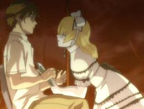 Le Portrait de CossetteSummary: >Eiri is an average college student working at an antique shop. One day he encounters a vision of a young girl trapped in a glass. Eiri becomes infatuated with the girl named Cossette, spending more and more time in the shop alone talking to her. Cossette reveals she needs to accept the soul of the man who killed her, also her father; if they want to continue seeing each other. Eiri agrees to this, entering a dark pact with her. As a consequence, he must accept the punishments due her father. Eiri becomes so embroiled with Cossette, others worry about him spending so much time "alone". It's clear some dark aura has formed around the shop, but no one is sure why. As for Cossette, does she really love Eiri? What are her intentions? Thoughts: >Le Portrait de Petite Cossette which means OVA 2 was more of the same, but the story begins to develop. I had a hard time accepting Eiri had simply fallen in love with Cossette, and I wasn't particular on her callous treatment of him, but the story gained some clarity. By episode three, things finally becomes clear in a story that makes sense with coherency. I felt most of this series was a waste of time, but the third episode redeemed this anime for me. The characters are hard to follow, but show a good level of depth once the anime shows enough of them to develop. I'm tempted to say I hate this anime, but on the other hand it takes many daring artistic directions few titles have the guts to do. This means Le Portrait de Cossette has a specific intended audience, but it's hard to say who that is. If asked if I'd like an abstract anime, with Gothic horror themes, I'd say that sounds great. Yet this one didn't appeal to me. Since my feelings are thoroughly mixed on what to recommend, I'm sitting this one out, but if the concept sounds interesting to you, I'd give it a try - provided you're open to waiting a while before it comes together.. Quote: >Eiri: Why am I the only one who can see you? Why do you have such sad eyes? Screen Caps: >