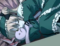 SolaSummary: >Yurito is a high school student fixated on taking pictures of the sky. Most days he accompanies a classmate to the hospital to visit his sickly sister, but often gets distracted by simple things like cloud formations. One night, Yurito waits for the dawn to photograph a sunrise when he encounters an odd but cute girl named Matsuri beating on a vending machine. A few days later they encounter each other again, this time when a man with a sword is attacking her. Yurito saves her just before she collapses into unconsciousness. Not sure what to do with her, he takes her home. Matsuri reveals she is a creature called a Yaka - a creature of the night which can't stand in sunlight. Concerned for her safety, Yurito decides she should stay at his house for a while. Matsuri has lived for hundreds of years, but never seen the sunlit sky. Yurito is determined to show her that sky, but her secrets may drive the two apart very soon. Thoughts: >I must like shows of this kind because I keep watching them. It looks like the typical formula of guy meets a mysterious magical girl, "stuff happens", then some minor conflict with a semi bittersweet ending. That's what I thought in the beginning anyway. The characters are unremarkable but likable enough. The story meanders and appears to lack direction. After the first 4 episodes (volume 1 of the DVD), circumstances made me take a break from Sola, but I figured I had this review already written in my head. Sola doesn't elaborate on much in the beginning, but shows potential. Baggage from other titles that never went anywhere, influenced my expectations, making it a surprise that Sola lives up to some of that potential. Instead of working up to a single big climax, Sola hits some good story points by the middle. One key piece of the puzzle completely changes what you think you know, and transforms the nature of the relationship between Matsuri and Yurito. Sorry I have dance around that topic - it would be a shame to ruin the story if you intend to watch this one. Sola is unusual because the so-so characters are rescued by a strong story (usually it's the other way around). It has attractive designs, a well done soundtrack, and good (Japanese) voice acting. Besides that, I liked the ending. It's not the "we're trying to be poetic so we'll do the tragic bittersweet ending" kind of thing. Instead Sola concludes in an upbeat yet appropriate way, and is something you can feel good about. Even though it coasts through the first phase, Sola has enough to make it better than similar titles, so squeaks by as above average. Quote: >Matsuri: I'd like to repay you. Is there anything you'd like me to do? Yorito: Do something? Matsuri: Anything is fine. Yorito: Uh... something... Matsuri: ... ... pervert. Yorito: I didn't say anything! Screen Caps: >