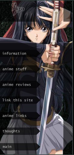 This website began focused on a single series, but branched out as I became interested in other anime. In the past people made web pages about things they liked with no particular goal in mind; usually turning websites into a sprawling mess, and I did the same. That's the joy of having your own anime website - unplanned messy spontaneous fun. I had many of ideas for pages at the time, but they've become very similar as I've lost creativity. Now days these pages are referred to as "shrine" sites, and few bother making to make them anymore. Which is too bad since I've always liked looking at what other people had to say about shows they liked and see what they did with a website.